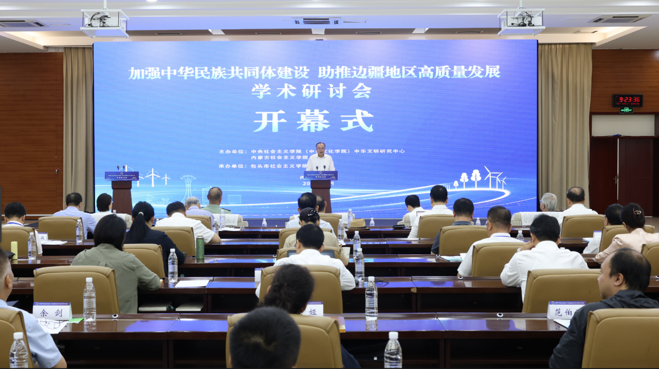 中新网包头7月23日电 (黄欣欣)“加强中华民族共同体建设,助推边疆地区高质量发展”学术研讨会23日在内蒙古包头举办。来自中央社会主义学院,边疆和民族地区、京津冀等地社院,内蒙古自治区民委、社科院、社科联的主要负责同志和专家学者近100人参会。