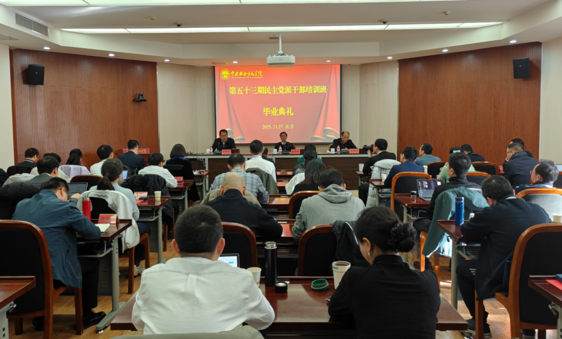 11月27日,第五十三期民主党派干部培训班在中央社会主义学院举行毕业典礼。学院党组副书记、副院长姚植传出席典礼并讲话,学院党组成员、教务长徐绍刚主持,中央统战部一局负责同志出席。
