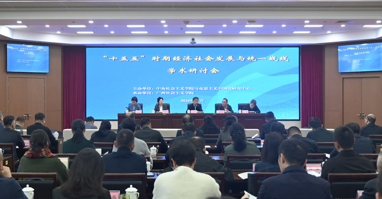 12月17日,由中央社会主义学院马克思主义中国化研究中心主办,广西社会主义学院承办的“‘十五五’时期经济社会发展与统一战线”学术研讨会在广西南宁举办。中央社院党组成员、副院长张天昱出席会议并讲话。广西壮族自治区党委统战部常务副部长林怀勇在开幕式上致辞。自治区党委统战部副部长、广西社院党组书记李银霞主持开幕式。