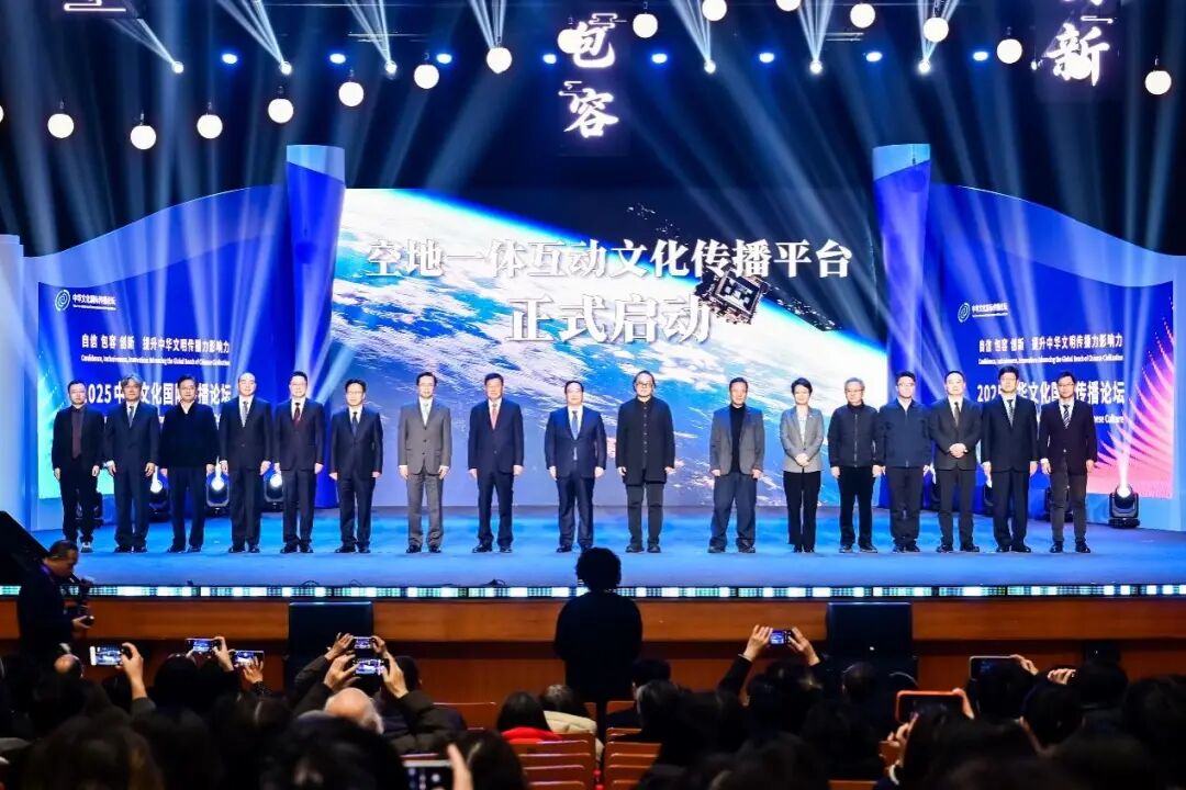 论坛现场举行了“空地一体互动文化传播平台”启动仪式。平台由中国外文局文化传播中心联合中国戏剧家协会、国家航天局新闻宣传中心共同打造,以我国第一颗文化传播卫星“有戏号”为关键节点,开创性地将航天科技与文化传播深度融合,将构建“天地共屏,双向互通”的全新范式。