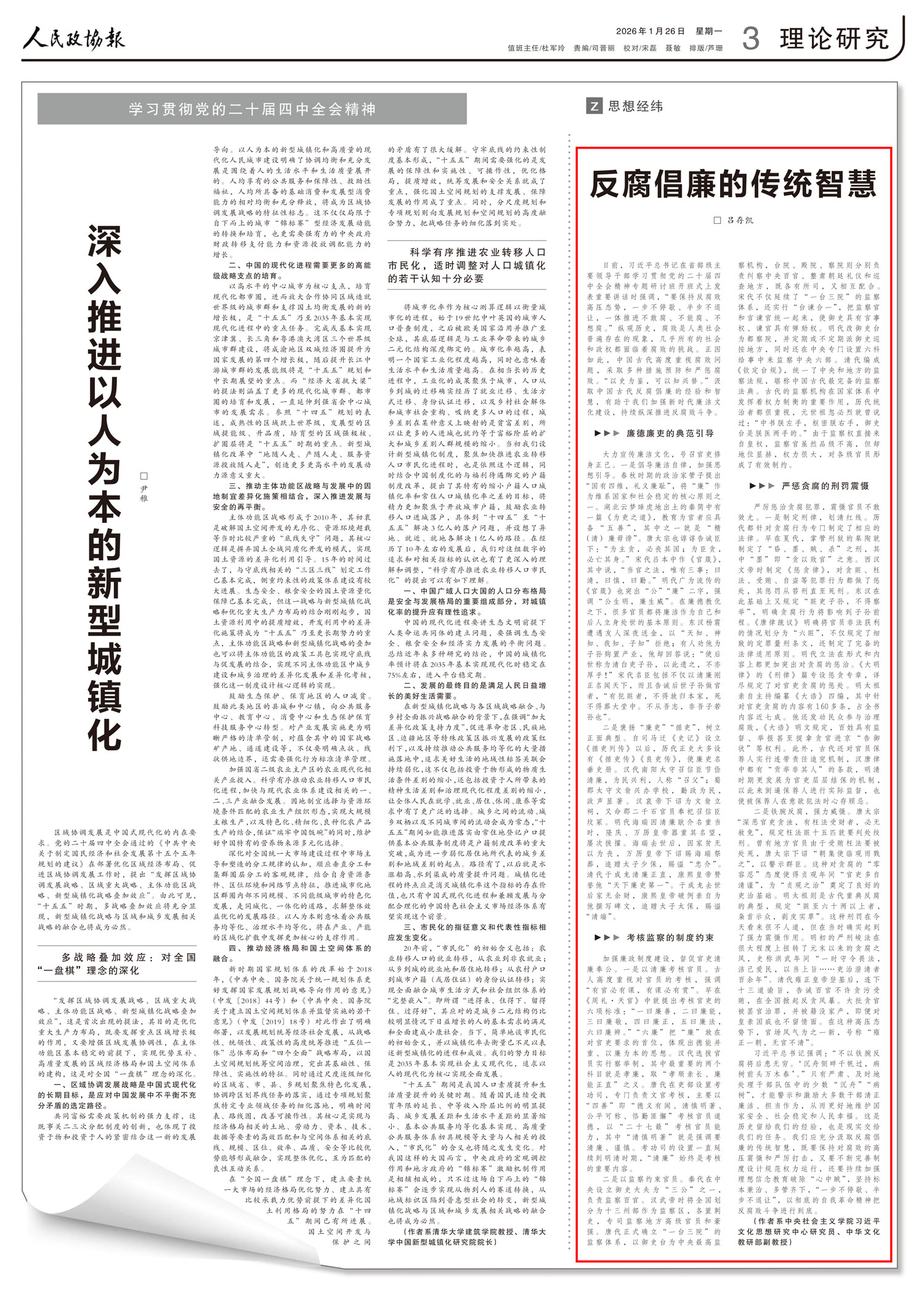 习近平总书记强调:“不以铁腕反腐将后患无穷。‘沉舟侧畔千帆过,病树前头万木春’。”只有严肃、及时地处理干部队伍中的少数“沉舟”“病树”,才能警示和激励大多数干部清正廉洁、担当作为,从而更好地维护国家安全、社会稳定和人民幸福。这是历史留给我们的经验,也是现实交给我们的任务。我们应充分汲取反腐倡廉的传统智慧,既要保持对腐败的高压震慑和严厉打击,又要不断完善制度设计规范权力运行,还要持续加强理想信念教育破除“心中贼”,坚持标本兼治、多管齐下,“一步不停歇、半步不退让”,以彻底的自我革命精神把反腐败斗争进行到底。