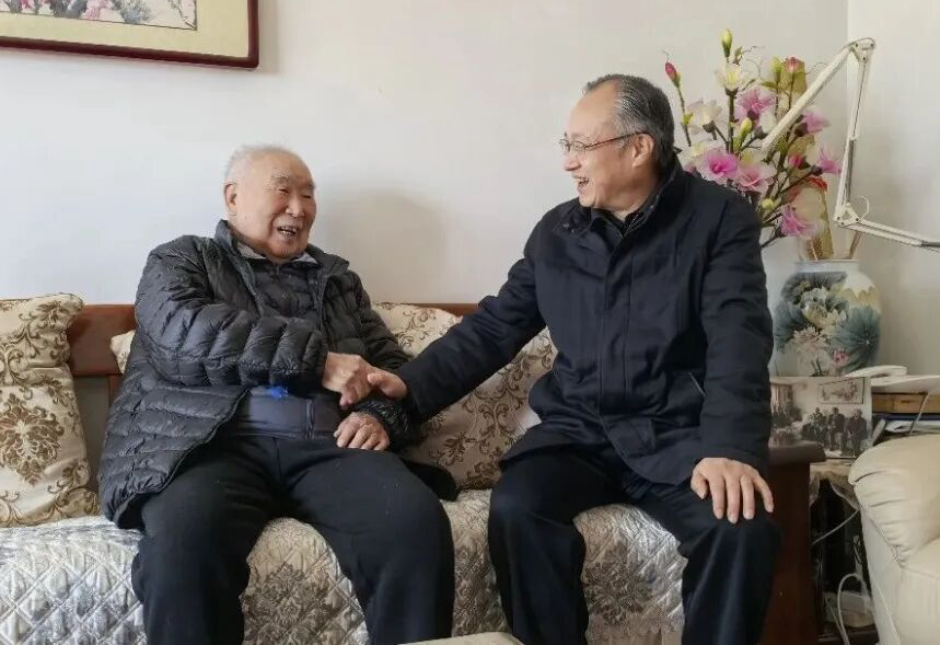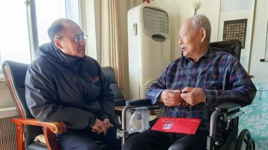 在学院原党组副书记、常务副院长赵广家中,黄守宏与其亲切攀谈,了解日常生活,关心身体状况,感谢他和全体离退休老同志为学院发展作出的贡献,祝福学院离退休老同志新春快乐、健康长寿。