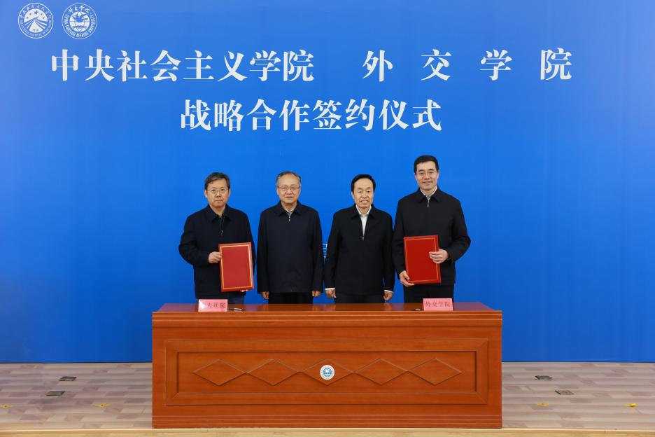 4月16日,中央社会主义学院(中华文化学院)与外交学院在京签署战略合作协议。中央社院党组书记、第一副院长黄守宏,外交学院党委书记王世廷出席签约仪式并致辞。中央社院党组副书记、副院长姚植传,党组成员、副院长张天昱、徐永全,外交学院党委副书记、校长高飞,党委委员、副校长李洪梅,党委副书记、专职纪委书记张坚,专职党委副书记周莉等参加仪式。张天昱与高飞代表双方签署协议。