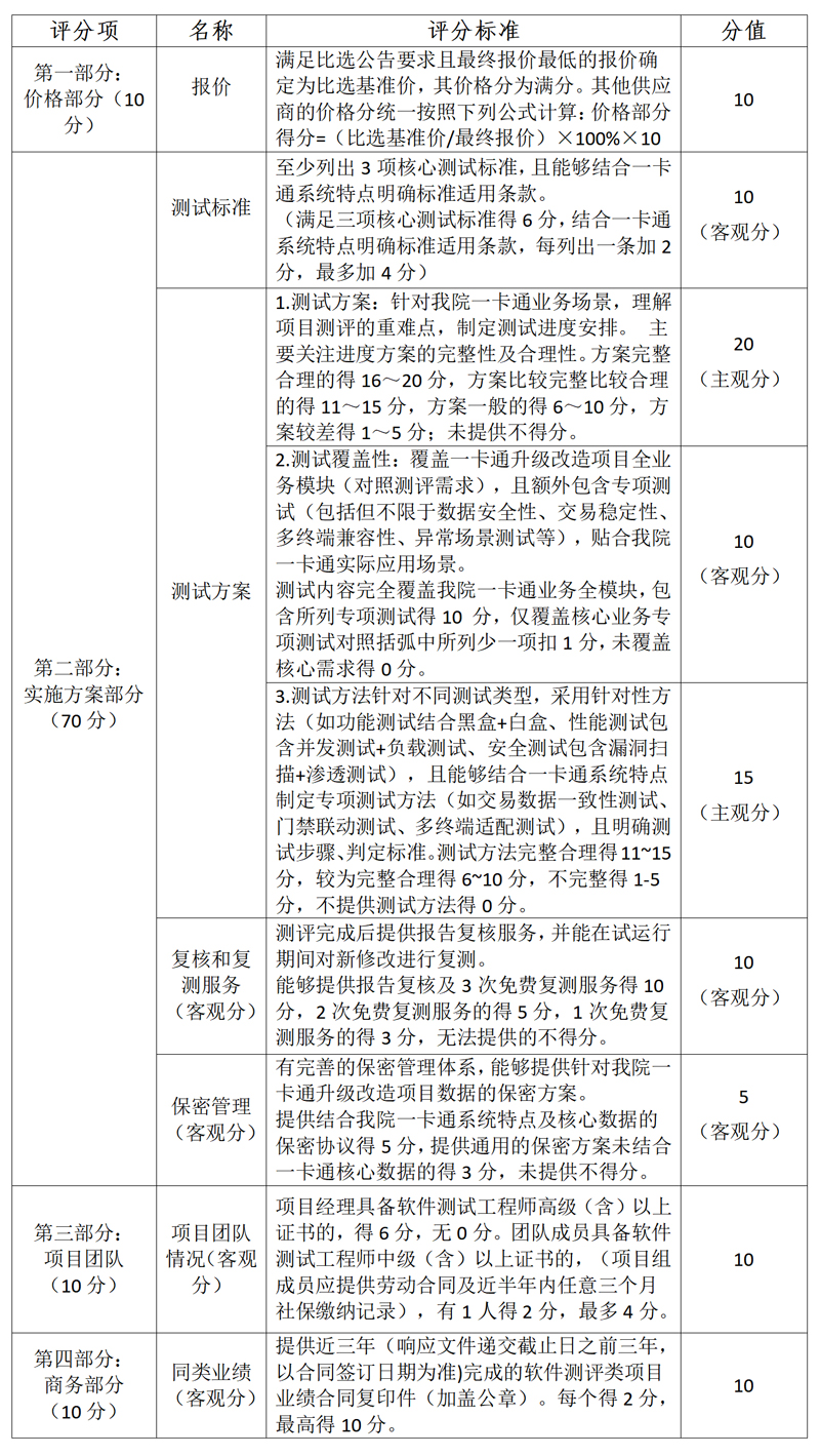 本项目采用比选形式,递交材料符合本项目要求的,综合得分最高的供应商中标。具体评分表如下: